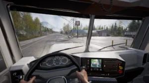 Грузовик ведёт себя как живой — скрипят амортизаторы на ухабах, мотор вздыхает на подъёмах, а на поворотах приходится заранее сбрасывать скорость, иначе прицеп упрётся в обочину. Игроку предстоит освоить не только управление, но и базовый ремонт: подтянуть ремень генератора в пути или заменить пробитую шину при свете фонарика. Маршруты пролегают мимо заброшенных лесопилок, рыбацких деревушек с парой домов и бескрайних тундровых просторов, где единственное развлечение — радио с треском и редкие встречные машины, мелькающие в темноте фарами.