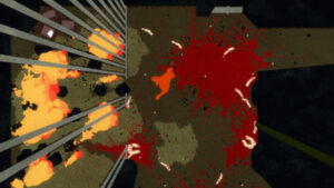 Визуально игра выглядит как серия живых шелкографических постеров. Цвета сочные, но сдержаны: тело гориллы — чистый чёрный, кровь — ярко-оранжевая, стены — белые или серые. Никаких текстур, никакой избыточной детализации. Такой минимализм не экономия — он заставляет мозг додумывать детали, а потому каждый разбитый экран или размазанный по стене силуэт запоминается острее, чем в любой фотореалистичной игре.