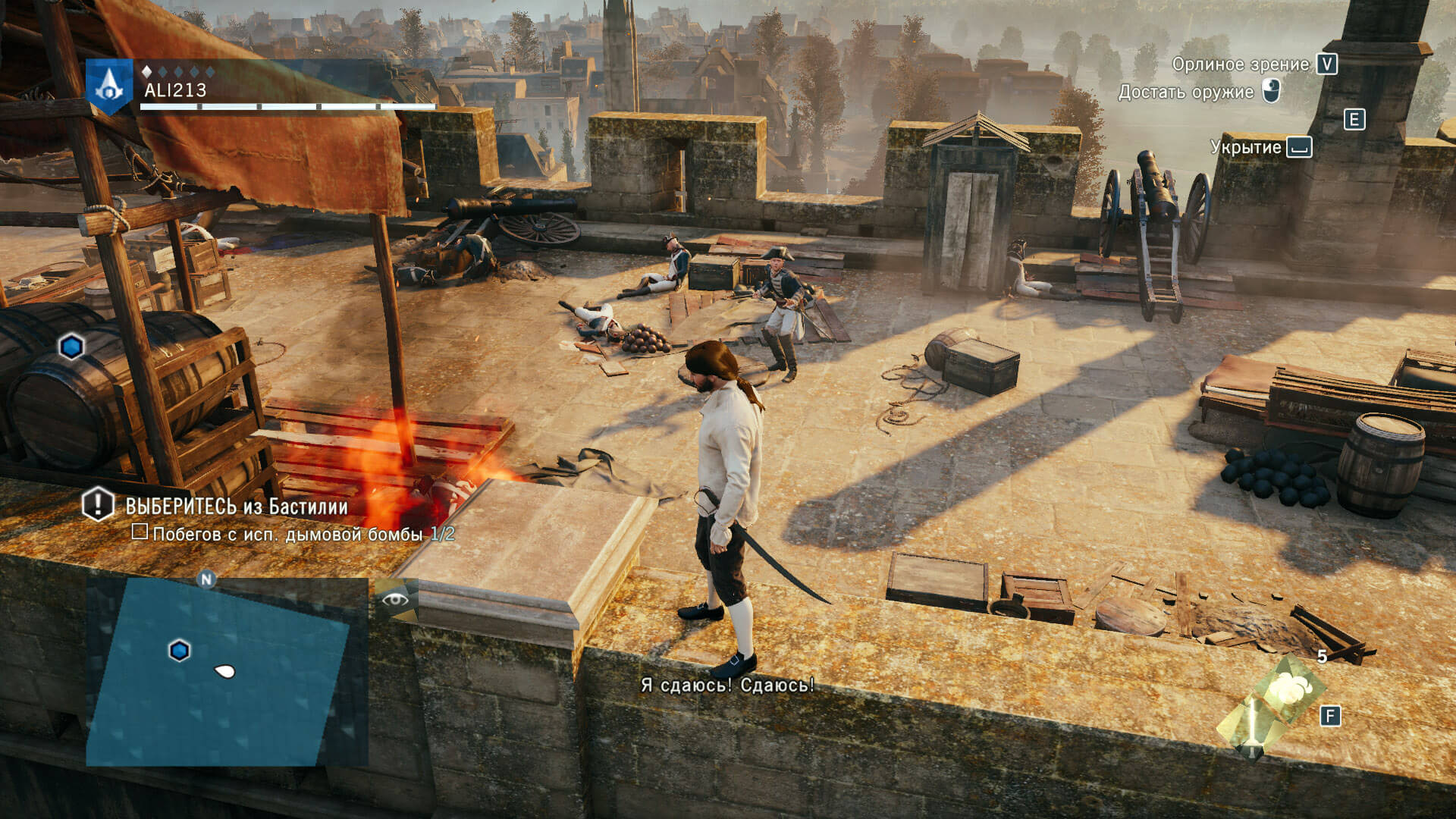 Город получился огромным и живым: толпы до тридцати тысяч человек на улицах, которые пугаются, дерутся или воруют прямо на глазах. Арно лазает по фасадам и прыгает с крыши на крышу — паркур тут отточен до мелочей, с отдельными кнопками для подъема и спуска. Можно затаиться в тени или смешаться с народом, чтобы подобраться к цели незаметно.