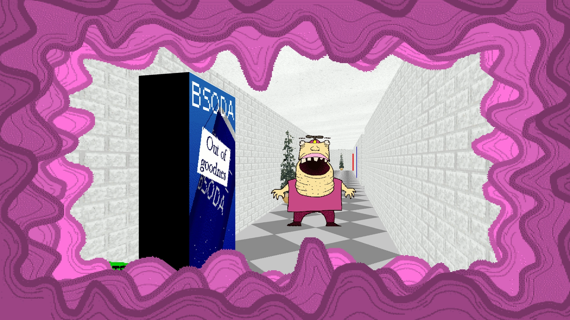 Baldi’s Basics Plus выглядит как та самая обучающая игра из школьных компьютерных классов девяностых — пока не поймёшь, что учитель математики Балди с линейкой в руках бежит за тобой чуть ли не со скоростью спринтера. Игроку предстоит собрать семь тетрадей по школе, решая простые примеры. Одна ошибка — и Балди меняет размер шага: сначала он размеренно отсчитывает «миссиссипи», потом переходит на бег, а к третьей ошибке уже слышен свист линейки над ухом. Школа здесь живая: то звонок неожиданно отпустит всех в коридоры, то появится Итачи с мешком на голове, предлагающий обменять монетки на полезные предметы.
