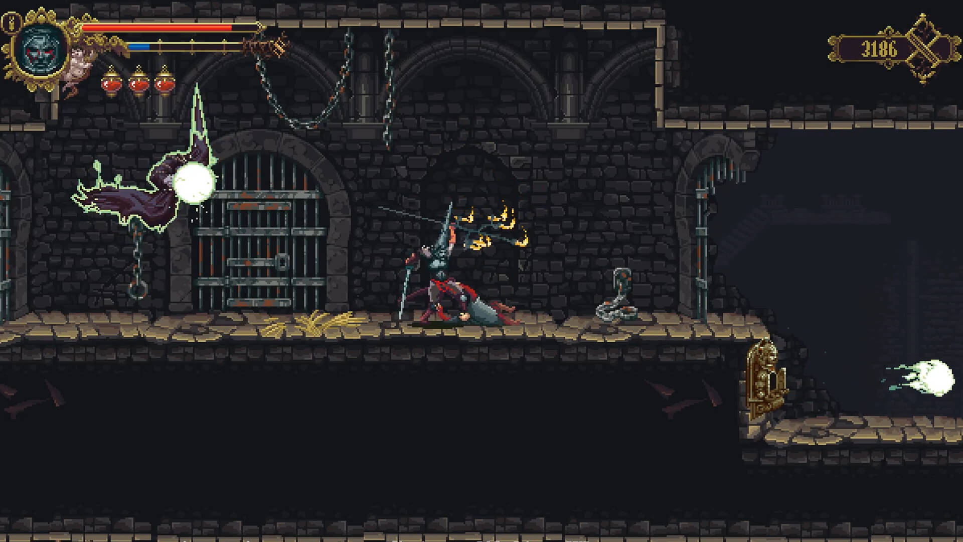 Городские улочки, соборы с искажёнными святынями и подземелья, где шевелятся немыслимые существа — всё пропитано особой эстетикой. Вдохновение явно черпается из испанских процессий Страстной недели: фигуры в рясах с закрытыми лицами, распятия с неожиданными деталями, алтари, где свечи горят чужим огнём. Пиксельная графика не просто красива — она дышит. Каждый спрайт прорисован вручную, и в этом ручном труде чувствуется почти одержимость. Статуи плачут кровавыми слезами, стены покрыты трещинами, похожими на морщины, а вдалеке постоянно звучит многоголосый хор, перемешанный с шепотом и звоном колоколов.