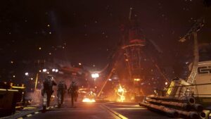 Корабль «Ретрибушен» становится вашим домом между миссиями. Здесь можно пообщаться с членами экипажа, узнать их истории или просто постоять у иллюминатора и посмотреть на звёзды. Эти тихие паузы контрастируют с хаосом космических баталий: один момент вы управляете истребителем в плотном бою у колец Сатурна, а следующий — отбиваетесь от десанта, ворвавшегося прямо на мостик. Игра не боится давать игроку передышку, но как только начинается перестрелка, темп взлетает до предела. Оружие адаптировано под условия космоса — здесь есть и знакомые по предыдущим частям модели с новыми модификациями, и принципиально новые системы вроде захватывающих крюков для быстрого перемещения по карте.