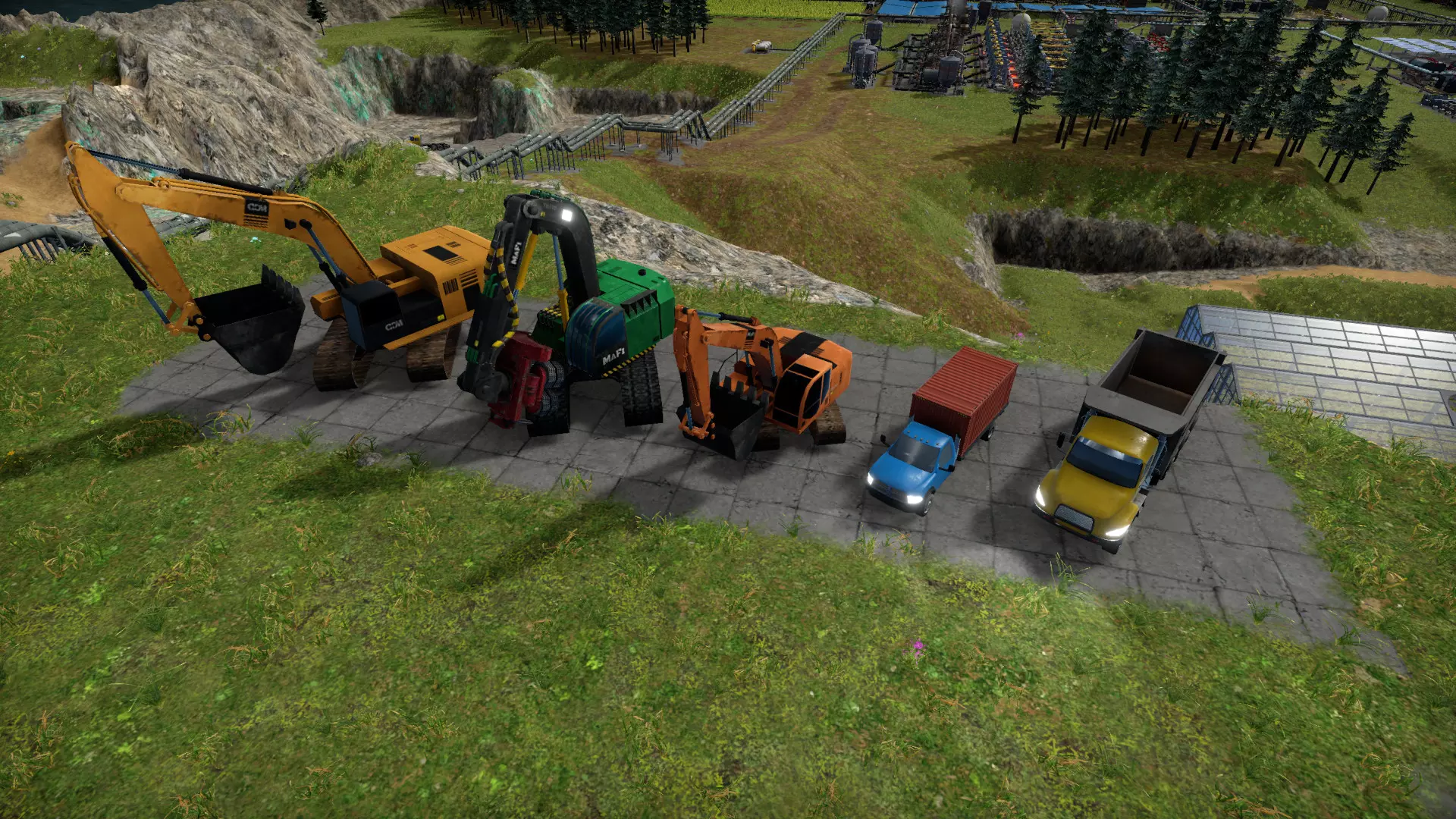 Система производства выстроена как головоломка из живых деталей. Руда не превращается в металл по щелчку — её нужно добыть, погрузить, довезти до печи, обеспечить топливом и рабочими, а готовый продукт снова отправить в путь. Иногда кажется, что половина времени уходит не на строительство заводов, а на бесконечную возню с дорогами и грузовиками, которые упрямо застревают в грязи. Но когда цепочка наконец замыкается и фабрика начинает работать без участия игрока, возникает странное удовлетворение — будто ты не просто собрал конструктор, а заставил дышать что-то хрупкое и непредсказуемое.