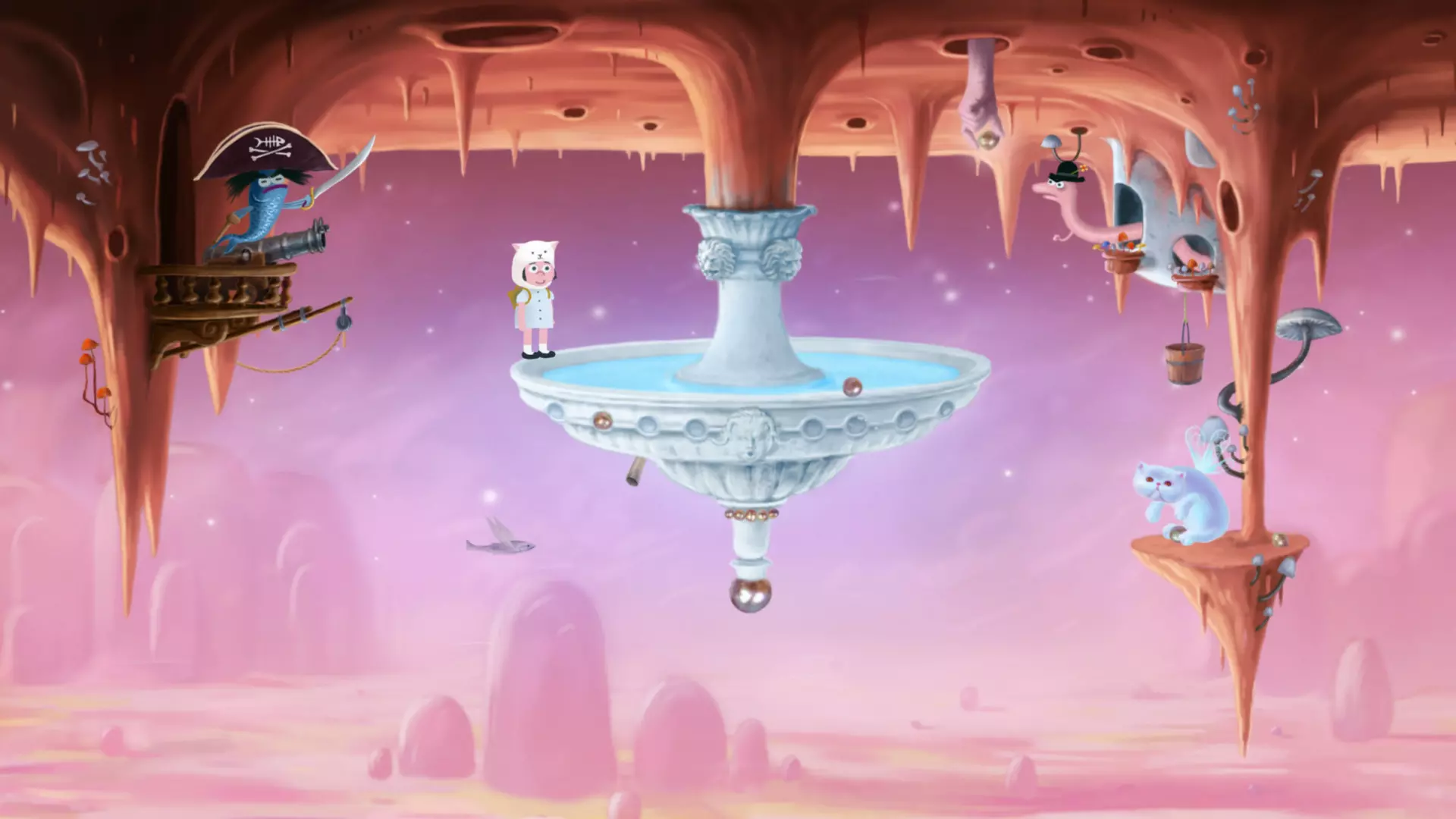 Котёнок Кэти просыпается в странном мире, где всё сделано из подушек, клубков и картонных коробок. Её задача проста — добраться домой, но путь лежит через лабиринты из книжных полок, прыжки по подоконникам и осторожное преодоление опасных участков вроде влажных полов и работающих пылесосов. Игра не пытается казаться чем-то большим, чем есть: это платформер с кошачьей логикой, где главная сложность — угадать, захочет ли персонаж в нужный момент прыгнуть или внезапно устроится спать прямо на краю пропасти.