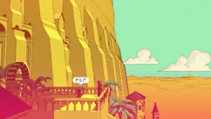 Визуально игра напоминает живую гравюру: чёткие линии, приглушённые цвета, архитектура, где чувствуется влияние Эшера и древних цивилизаций. Каменные лестницы вьются вдоль внутренних стен башни, сады раскинулись террасами, а наверху астрономы следят за звёздами через отверстия в потолке. Музыка почти отсутствует — только шаги по плитам, шелест ткани и редкие фразы на непонятном языке. Эта тишина работает на атмосферу: расшифровка каждого слова ощущается как маленькое чудо, потому что никто не подгоняет и не торопит. Можно час стоять у рынка и смотреть, как меняются цены, пока не станет ясно, какие символы означают «дорого», а какие — «дёшево».
