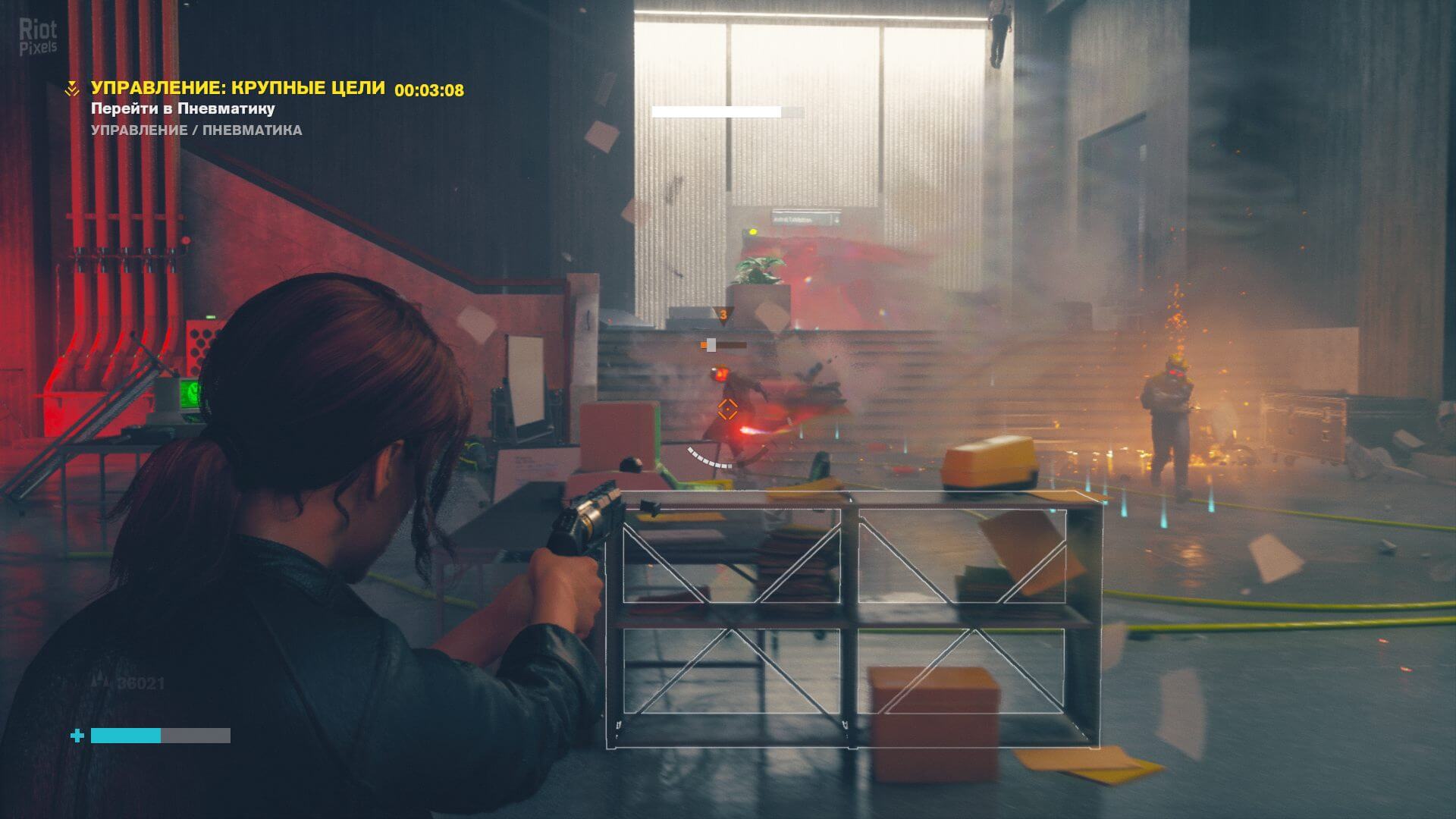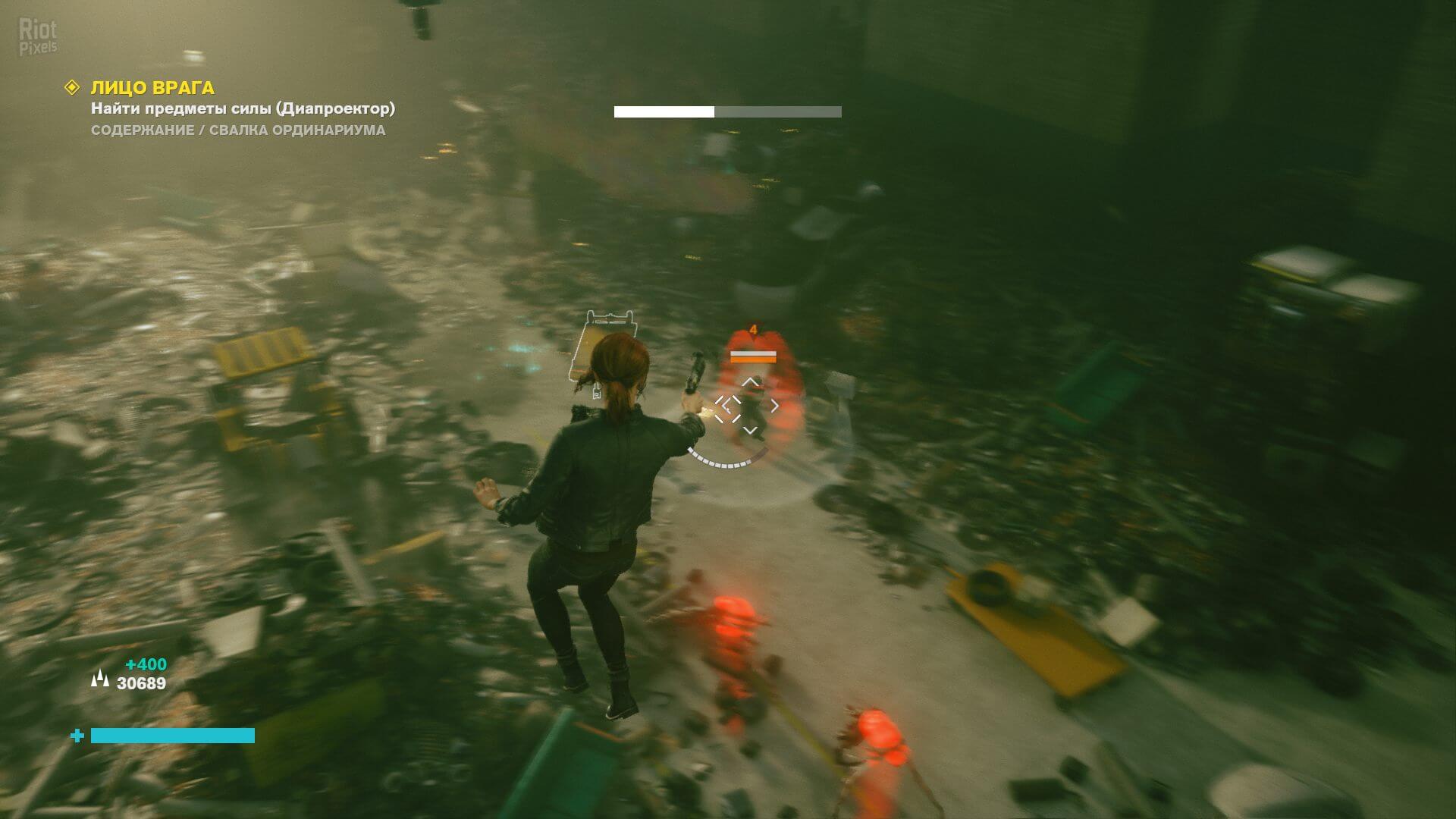 Боевая система строится вокруг способности поднимать окружающие предметы — столы, обломки бетона, даже целые бетонные плиты — и швырять их во врагов с такой силой, что те разлетаются в щепки. Оружие в руках Джесс, «Служебная единица», постоянно меняет форму: то превращается в дробовик для ближнего боя, то вытягивается в снайперскую винтовку. При этом укрытия здесь редкость — приходится быстро перемещаться, использовать щиты из поднятых объектов и ловко уворачиваться от летящих в ответ осколков. Сражения получаются хаотичными, почти танцевальными: ты не прячешься за углом, а становишься центром разрушения.