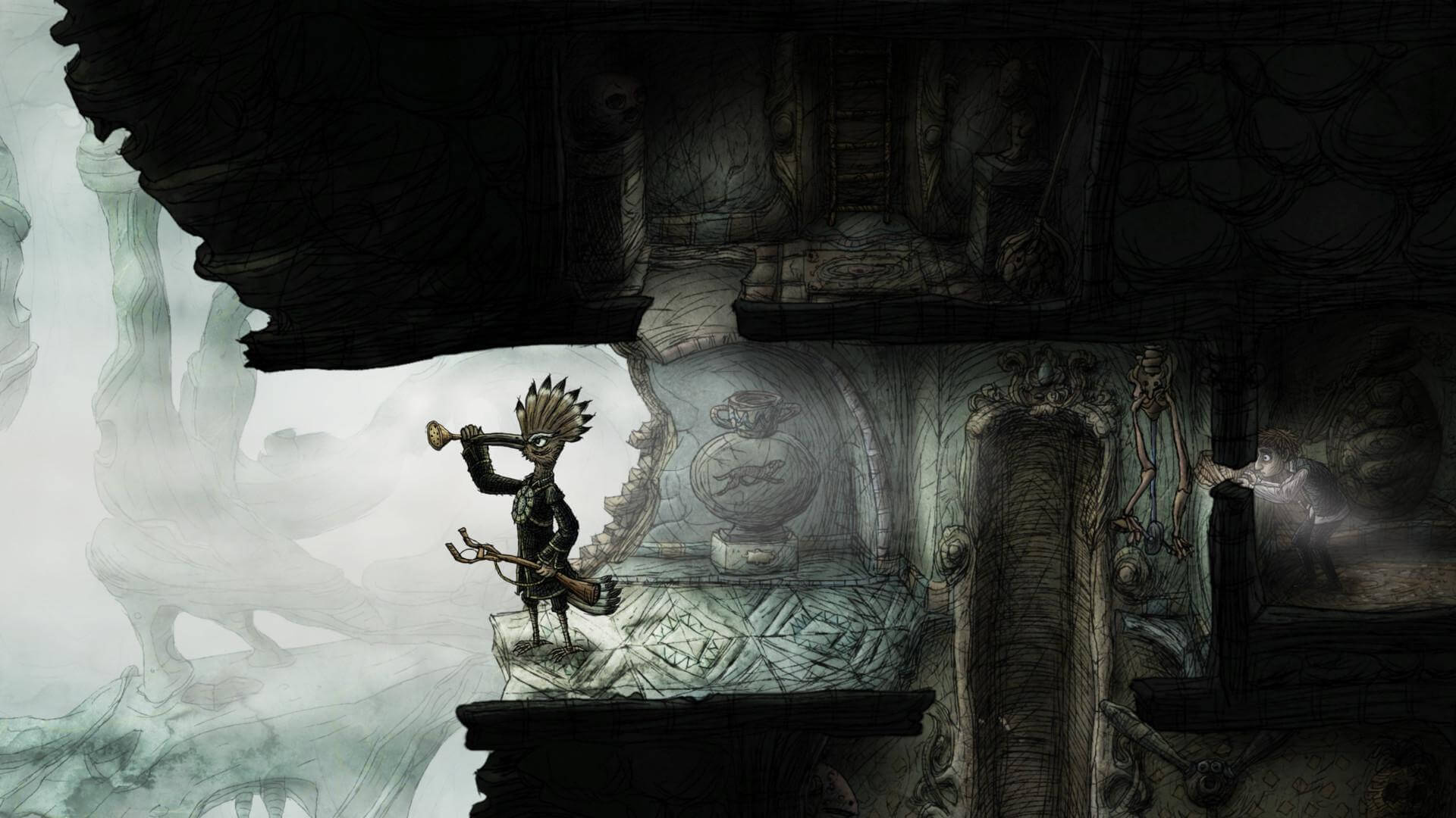 Графика будто сошла со страниц старого иллюстрированного альбома: каждый кадр прорисован вручную, с лёгкой шероховатостью карандашных линий и тёплыми оттенками охры, сепии и тёмно-синего. Музыка почти незаметна — редкие ноты фортепиано, скрип половиц, далёкий звон колокольчика. Звук здесь работает как ориентир: по шороху за стеной можно понять, куда идти, а по ритму шагов — успеешь ли проскочить мимо. Никаких диалогов, никаких подсказок сверху — только интуиция и внимание к деталям.