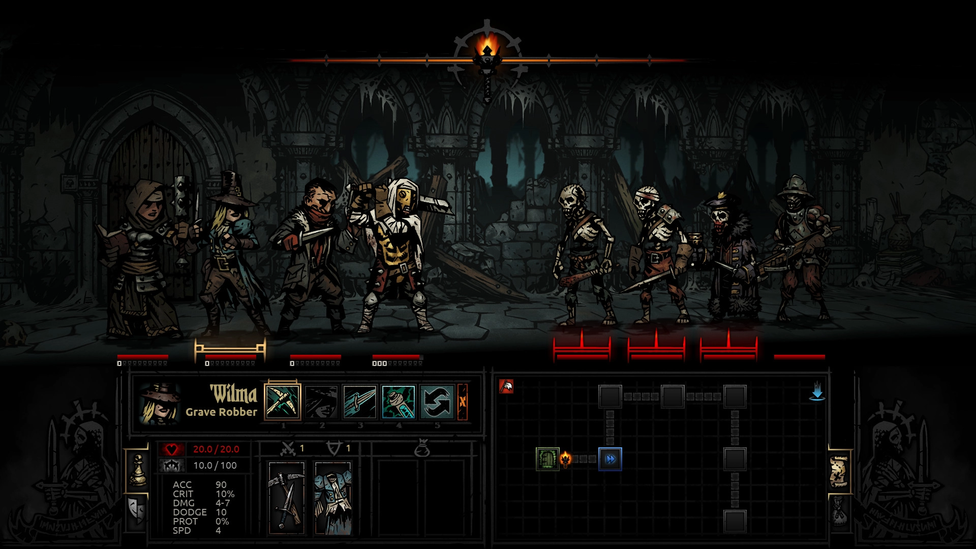 Геймплей строится на тактических схватках в узких коридорах, где каждое передвижение по рядам имеет значение. Лучник бесполезен в первом ряду, а монах с его священным пламенем может и исцелить союзника, и сжечь книгу в библиотеке — лишив отряда шанса найти карту. Случайность неумолима: критический удар врага в любой момент способен перечеркнуть час осторожного продвижения. Но именно в этом и кроется извращённое удовольствие — не в победах, а в том, как долго удаётся отсрочить неизбежное поражение.