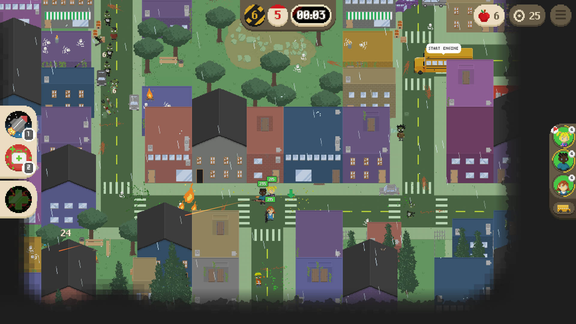 Геймплей строится вокруг динамичных перестрелок с видом сверху, где важно не только метко стрелять, но и быстро перемещаться по локации. Игрок управляет одним из выживших персонажей, каждый из которых обладает уникальными навыками и стартовым снаряжением. Уровни генерируются процедурно, поэтому каждый заход требует новой тактики: иногда проще прорваться сквозь толпу, а в других случаях приходится искать обходные пути и экономить патроны.