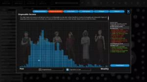 Интерфейс выглядит как набор диаграмм и таблиц, но за этим скрывается живая система. Граждане не просто цифры — у них есть убеждения, доходы, место жительства. Молодой программист из города проголосует иначе, чем владелец лесопилки на окраине. Иногда достаточно изменить одно правило, чтобы запустить цепную реакцию: например, бесплатное высшее образование поднимает квалификацию кадров, но опустошает казну, а через десять лет приводит к технологическому буму или к массовым забастовкам из-за долгов.