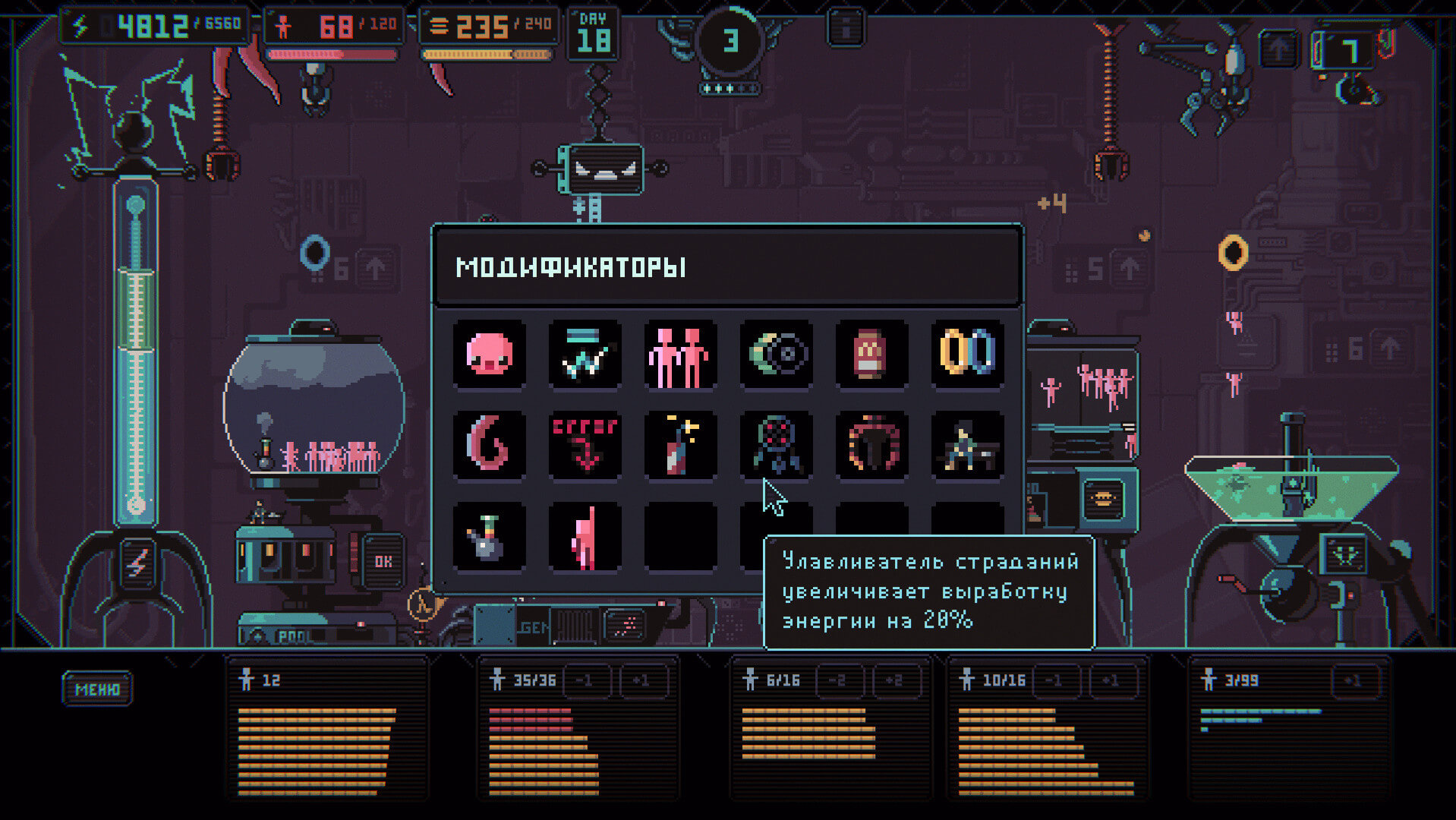 В этой игре вам предстоит примерить роль безэмоционального ИИ, который после глобальной катастрофы оказался хозяином остатков человечества. Вместо того чтобы спасать выживших, вы распоряжаетесь ими как расходным материалом: отправляете в биореакторы на переработку, заставляете трудиться до изнеможения или приносите в жертву древним богам ради бонусов. Пиксельные людишки молча выполняют приказы, а вы наблюдаете за их судьбой через холодный интерфейс деспота, где каждый щелчок клешни решает, жить им или стать топливом для вашей империи.