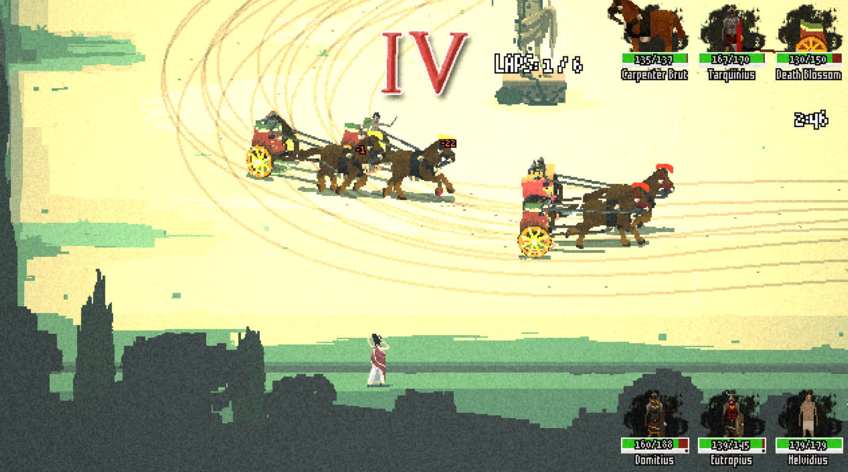 Игра не пытается казаться серьёзной исторической реконструкцией — в ней есть чёрный юмор и ирония. Гладиаторы перебрасываются колкостями перед боем, зрители требуют крови с той же лёгкостью, с какой обсуждают погоду, а римские чиновники ведут себя как надоедливые менеджеры среднего звена. Саундтрек в стиле чиптюн подчёркивает эту атмосферу: кажется, будто сама эпоха Древнего Рима пропущена через старый компьютер с ограниченной палитрой и 8-битным звуком.