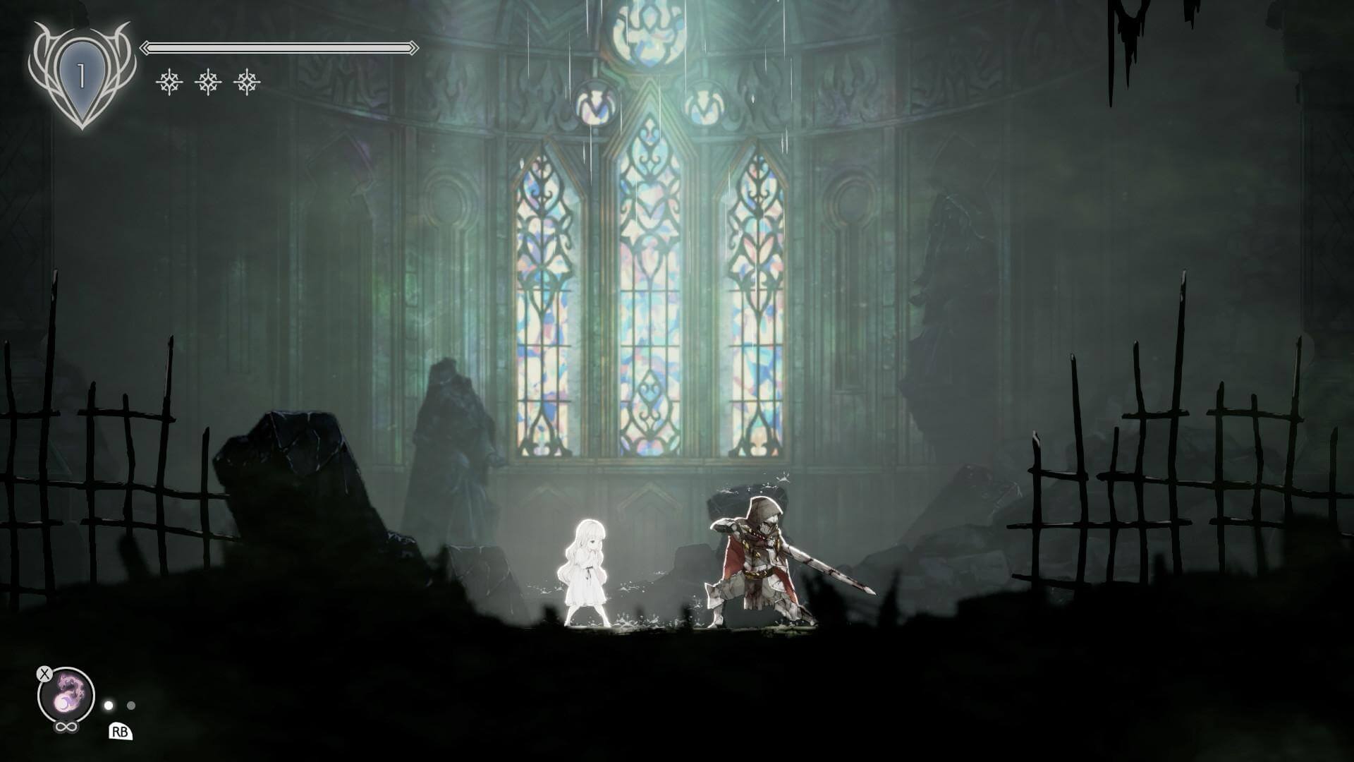 Бой здесь не про скорость или акробатику — он про расчёт и терпение. Лили не наносит ударов сама: она отступает в тень, пока её текущий рыцарь отвлекает врага, и в нужный момент выпускает его дух на атаку. Победив босса, можно очистить его душу и навсегда добавить в арсенал — тяжеловооружённый паладин пробьёт щиты, а монах-лучник достанет цель через пропасть. Но с каждой новой способностью игра не становится проще: она лишь открывает двери в ещё более мрачные уголки королевства, где дождь стучит по камню, как счётчик времени.