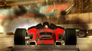 В третьей части серии FlatOut разработчики решили пойти по пути максимального хаоса. Игрок управляет разномастными автомобилями на трассах, где главная цель — не просто приехать первым, а устроить как можно больше разрушений по пути. Машины крошатся в щепки при столкновениях, детали разлетаются в разные стороны, а водители с неожиданной лёгкостью вылетают из салона. Эта часть сделала ставку на абсурд: здесь есть гонки на газонокосилках, мини-игры с запуском пилотов через препятствия и трассы, заваленные строительным мусором.