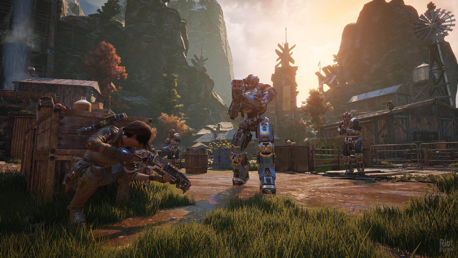 Gears of War 4 возвращает знакомую механику укрытий и прицеливания из-за угла, но добавляет новые слои — погодные аномалии вроде «рвоты ветра», которые сносят укрытия и заставляют постоянно двигаться. Оружие ощущается тяжёлым и грубым, перезарядка по-прежнему требует точного тайминга, а каждая перестрелка превращается в напряжённый танец между укрытием и риском выстрелить на бегу. Отдельного внимания заслуживает кооператив: пройти кампанию вдвоём — совсем другое ощущение, когда можно прикрыть напарника или вместе отбиваться от толпы врагов в узком коридоре.