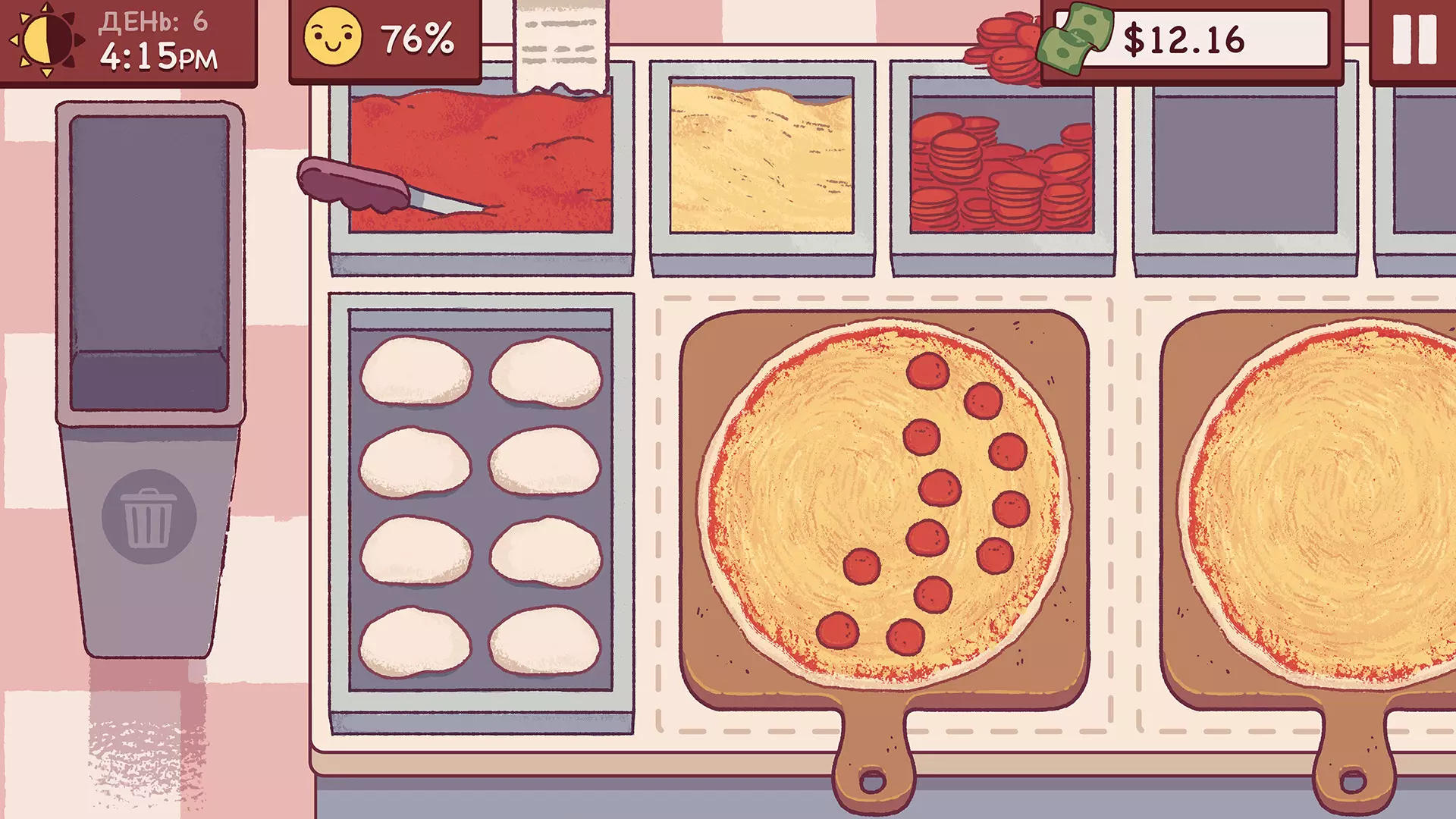 Игра не пытается казаться чем-то большим, чем есть — это тихий уголок, куда можно зайти вечером и полчаса спокойно раскатывать тесто под лёгкую лоу-фай музыку. Никто не кричит, не горит кухня, не рушится бизнес. Просто ты, тесто и люди, которые ценят хорошую пиццу. Иногда хватает и этого.