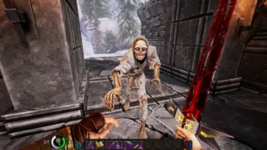 Движок современный, но геймплей сознательно старомодный. Нужно искать ключи, чтобы открыть двери, собирать аптечки по углам и постоянно следить за боеприпасами — особенно когда вокруг начинает кишеть нечисть. Прыжки высокие, камера слегка подпрыгивает при беге, а звук выстрелов отдаётся эхом в пустых залах. Иногда создаётся впечатление, что разработчики специально оставили лёгкую «дерганость» анимаций, чтобы сохранить тот самый тактильный отклик, к которому привыкли поклонники Hexen и Blood. Это не ремастер и не ностальгический ремейк — скорее дань уважения эпохе, когда шутеры ещё не боялись быть немного неуклюжими.