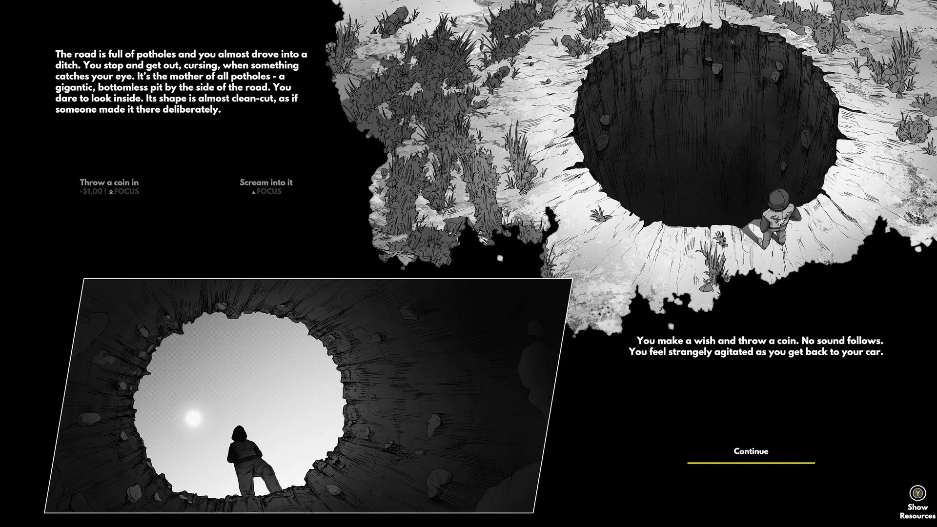Heading Out — это не совсем гоночная игра, хотя за рулём вы проведёте большую часть времени. Скорее это дорожное бегство: вы садитесь в машину и мчитесь прочь от чего-то, что преследует вас сзади. На экране — стилизованные под комикс нуарные пейзажи американских хайвеев, а в голове — ощущение, будто вы оказались внутри старого фильма вроде «Бегущего по лезвию» или «Париж, Техас». Иногда приходится жать на газ, чтобы оторваться от преследователей, а иногда просто ехать и слушать, как за кадром звучат обрывки размышлений.