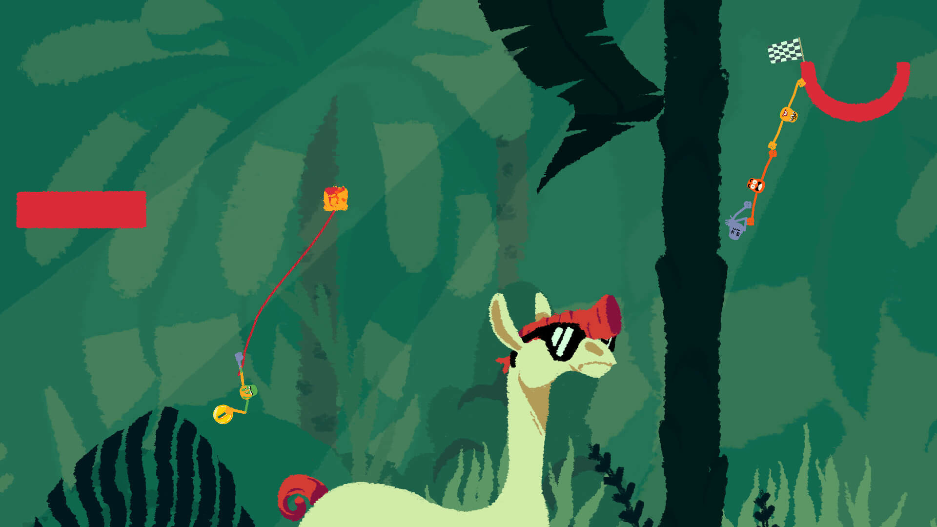 Визуально игра выглядит нарочно примитивно — персонажи похожи на нарисованные фломастером кляксы, а фон часто сводится к однотонному градиенту. Но именно эта минималистичность работает на руку: ничто не отвлекает от главного — от твоих рук и от рук товарищей, которые то спасают ситуацию, то усугубляют её до абсурда. Иногда кажется, что разработчики сами не ожидали, насколько смешными окажутся провалы, когда четыре головы в панике хватаются друг за друга и медленно, неизбежно плывут к краю платформы.