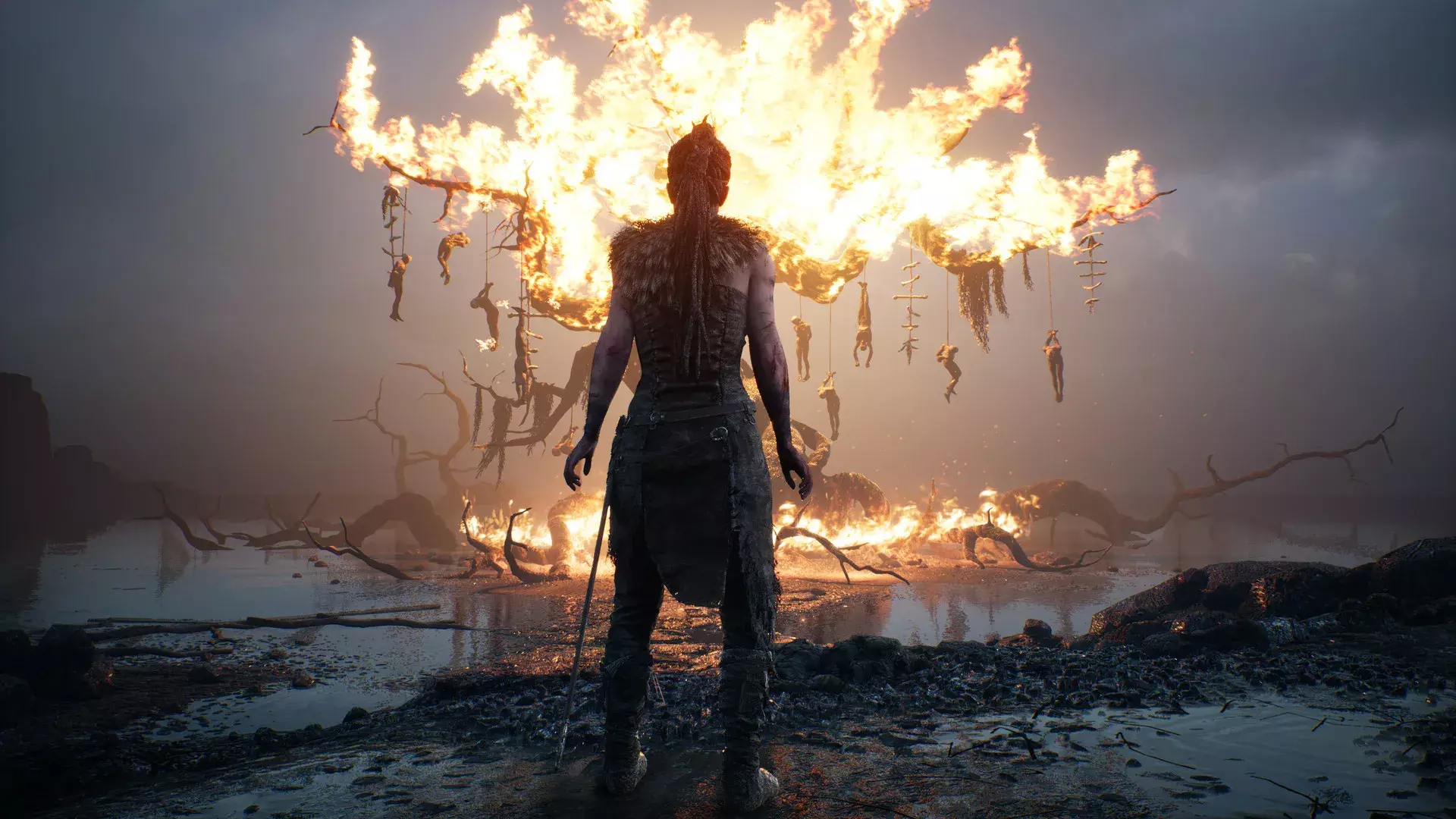 Визуально игра выглядит как кошмар, снятый на плёнку: дым, пепел, ржавчина, туман. Цвета то выцветают до серости, то вспыхивают багровым в моменты паники. Звук здесь работает как отдельный слой реальности — шорохи за спиной, смех из ниоткуда, внезапная тишина. Разработчики из Ninja Theory консультировались с нейробиологами и людьми с опытом психоза, чтобы не украсить страдание, а передать его честно. Это не «игра про безумие» — это попытка пройти часть пути рядом с тем, кто его переживает.