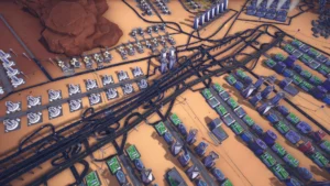 Сначала всё кажется управляемым — пара солнечных панелей, дорога к месторождению железа, небольшой конвейер. Но уже к середине кампании экран заполняет запутанная паутина транспортных линий, где грузовики объезжают аварию у шахты, дроны развозят запчасти между ремонтными базами, а в углу тикает счётчик: осталось 17 минут до пылевой бури. Неудачно спланированный поворот может парализовать всю колонию. Приходится перестраивать инфраструктуру на ходу, жертвовать эффективностью ради надёжности или наоборот — рисковать, выжимая максимум из каждой ветки маршрута.