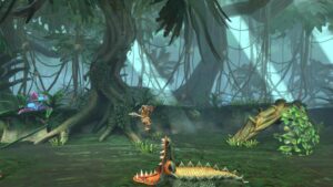 Подземелья здесь живые — в прямом смысле. Стены то и дело сдвигаются, обрушиваются сталактиты, а в темноте мелькают силуэты существ, которые лучше облететь стороной. Иногда приходится гасить тягу и скользить в полной тишине, пока рядом проплывает что-то крупное и зубастое. Музыка уходит на второй план, оставляя только гул двигателя и собственное дыхание — моменты, когда понимаешь, что затаил воздух вместе с персонажем.