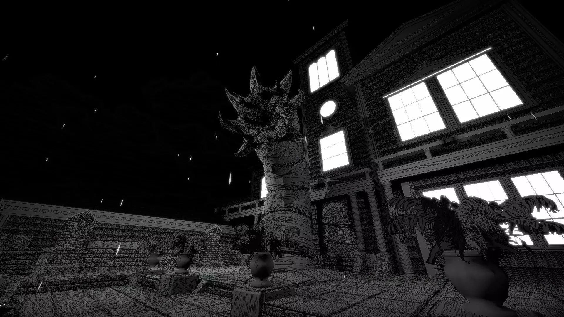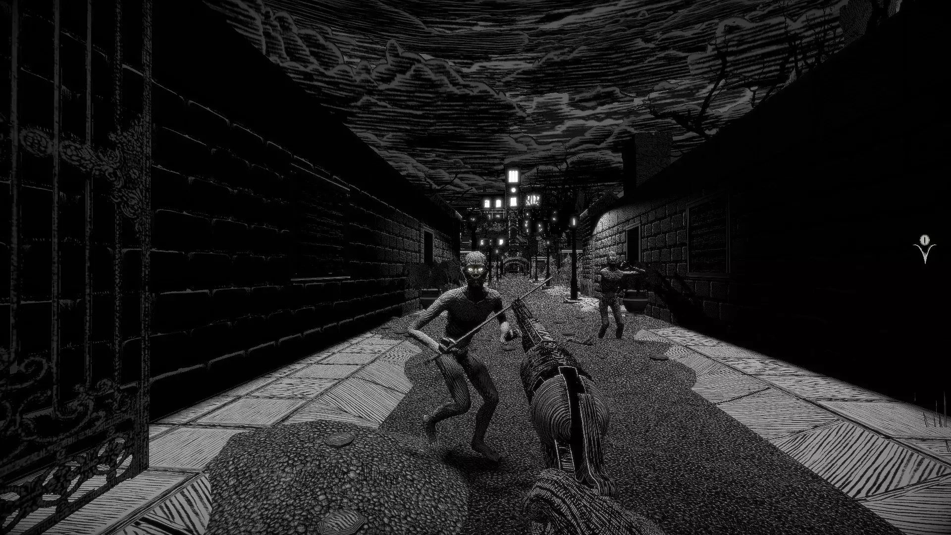 Особенность в рисованной графике пером и тушью — всё черно-белое, как в старом комиксе ужасов, но палитру цветов можно подкрутить под себя. Локации не повторяются: пароход на реке, готическая башня с часами, особняк, лесная чаща, поле после Гражданской войны. Саундтрек на синтезаторах давит на нервы, а дизайн уровней заставляет красться и высматривать укрытия.