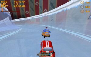 Одиночный режим предлагает пройти десятки уровней, каждый со своим характером и ловушками. Но настоящая магия раскрывается в мультиплеере — до четырёх игроков могут соревноваться на одном экране, превращая заезды в шумное веселье с обвинениями в нечестной игре и радостными возгласами при удачном обгоне. Нет никакой сложной прокачки или меню настроек — сел, выбрал машинку и поехал. Именно эта непосредственность и делает игру такой затягивающей: за «ещё один заезд» легко потерять полчаса.