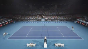Графика не претендует на фотореализм, но передаёт атмосферу корта — от летнего зноя на Уимблдоне до вечерней прохлады Открытого чемпионата Австралии. Анимации плавные, движения игроков выглядят естественно, а камера следует за мячом без резких скачков. Звук тоже работает на погружение: скрип кроссовок на грунте, глухой удар по мячу при слайсе, тишина перед решающей подачей в матче на выбывание. Это не демонстрация технологий, а фон для игры — как должно быть в спортивном симуляторе.
