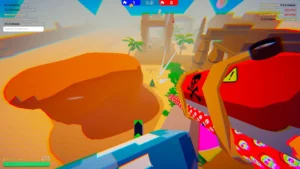 В Paint Warfare всё решает территория. Игроки вооружаются краскопультами и захватывают пространство вокруг себя, превращая серые ландшафты в пёстрые поля боя. Краска здесь — не просто декорация: стоять на своей территории удобнее и безопаснее, а чужая замедляет передвижение. Матчи проходят быстро, по три-четыре минуты, и за это время команда должна либо покрыть краской больше площади, либо уничтожить всех противников — в зависимости от выбранного режима.