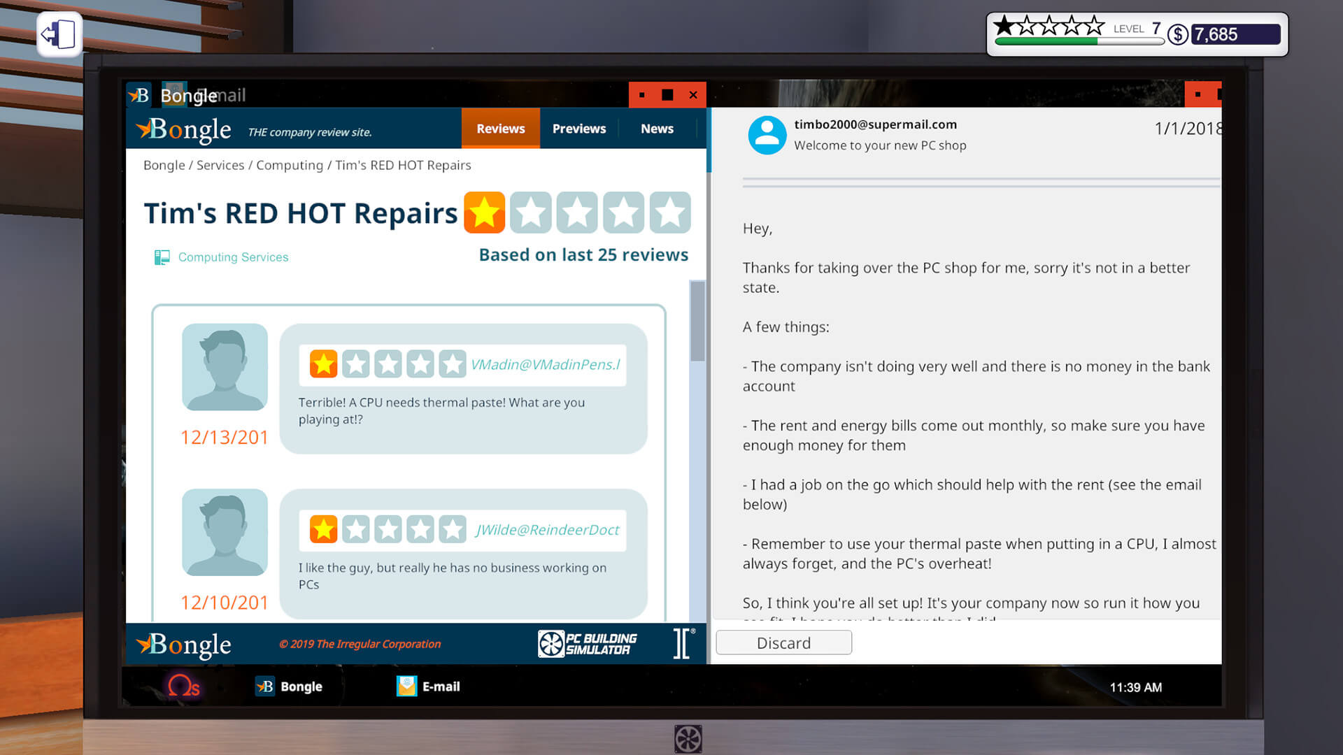 Игра предлагает режим карьеры, где вы управляете собственной ремонтной мастерской. Клиенты приносят «кирпичи» с самыми разными бедами: от банального зависания до загадочных синих экранов. Приходится диагностировать, менять детали, чистить от пыли и объяснять в чате, почему старый жёсткий диск тормозит систему. Со временем появляются новые инструменты, расширяется склад запчастей, а репутация растёт — если, конечно, не перепутать местами кулер и оперативную память в спешке.