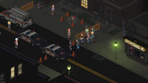Графика выполнена в стилизованной пиксельной технике с ограниченной палитрой — преимущественно серые, чёрные и редкие всполохи неонового синего или красного. Это не ностальгия по старым консолям, а осознанный приём: тени в углах экрана действительно скрывают улики, а лица собеседников едва различимы при свете настольной лампы. Управление минималистичное — стрелки для перемещения, пробел для взаимодействия, мышь для изучения деталей. Иногда приходится возвращаться в уже знакомые локации, потому что новая информация вдруг делает старые предметы значимыми.