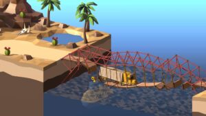 В игре Poly Bridge 2 игроку предстоит проектировать и строить мосты, которые выдержат не только вес проезжающих машин, но и собственную нестабильность. Каждый уровень даёт ограниченный бюджет и набор материалов — дерево, сталь, тросы, гидравлику — а дальше начинается эксперимент: то балка ломается под первым же грузовиком, то вся конструкция складывается гармошкой от ветра. Иногда самый элегантный на бумаге мост рушится в самый неподходящий момент, а кривоватая импровизация из подручных элементов держится как влитая. Такие моменты заставляют перезапускать уровень снова и снова, подкручивая угол наклона или добавляя одну лишнюю опору.