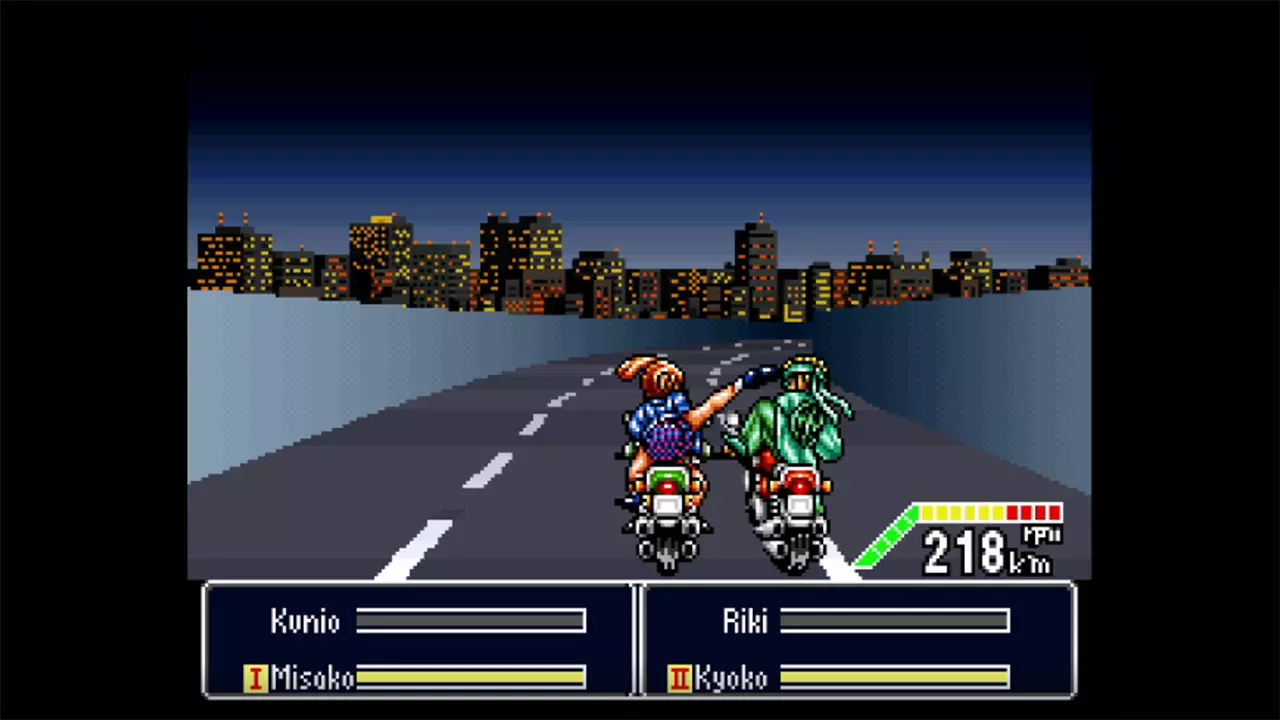 Геймплей держится на проверенной годами механике бит-эм-апов: идёшь по улицам, бьёшь всех подряд, подбираешь временные улучшения вроде цепей или бейсбольных бит. Удары получаются весомыми, анимация угловатая, как и положено ретро-проекту. Иногда это раздражает — камера не всегда успевает за действием, а некоторые приёмы срабатывают через раз. Но именно эта небрежность придаёт игре характер. Здесь нет идеального баланса или продуманных до мелочей механик — зато есть ощущение, что ты играешь в настоящую японскую аркаду девяностых, со всеми её причудами и нелепыми поворотами сюжета.