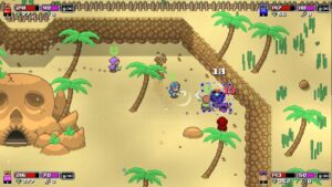 Играть можно в одиночку, но настоящая магия раскрывается в компании. До четырёх человек собираются вместе — по локальной сети или онлайн — и отправляются в подземелья, где один прикрывает спину другому щитом, второй бросает гранаты в толпу скелетов, а третий уже лезет за сундуком в соседнюю комнату. Никаких сложных ролей или обязанностей: просто собери друзей и иди рубить монстров, как в те далёкие времена, когда кооп означал именно это — хаотичное, весёлое сотрудничество без инструкций.