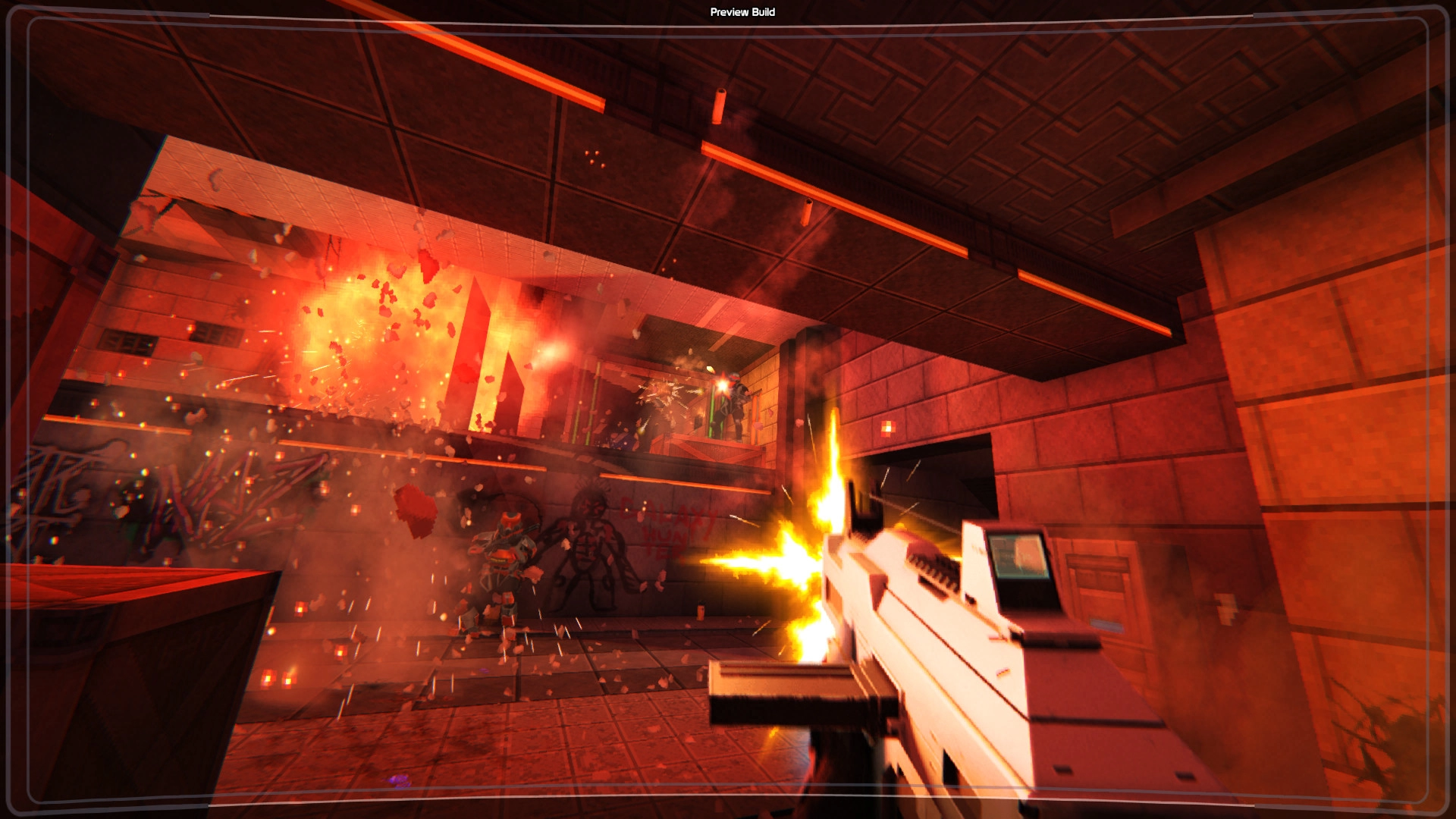 Технически игра построена на GZDoom, и это чувствуется в лучшем смысле: пиксельные текстуры, спрайтовая графика, но при этом плавная анимация и современная физика разрушений. Саундтрек перекликается с атмосферой старых шутеров — синтвейвные мотивы, которые то ускоряются в перестрелке, то затихают, когда остаёшься один в полумраке коридора. Иногда движок даёт сбой и игра вылетает, но разработчики постепенно подчищают такие моменты.