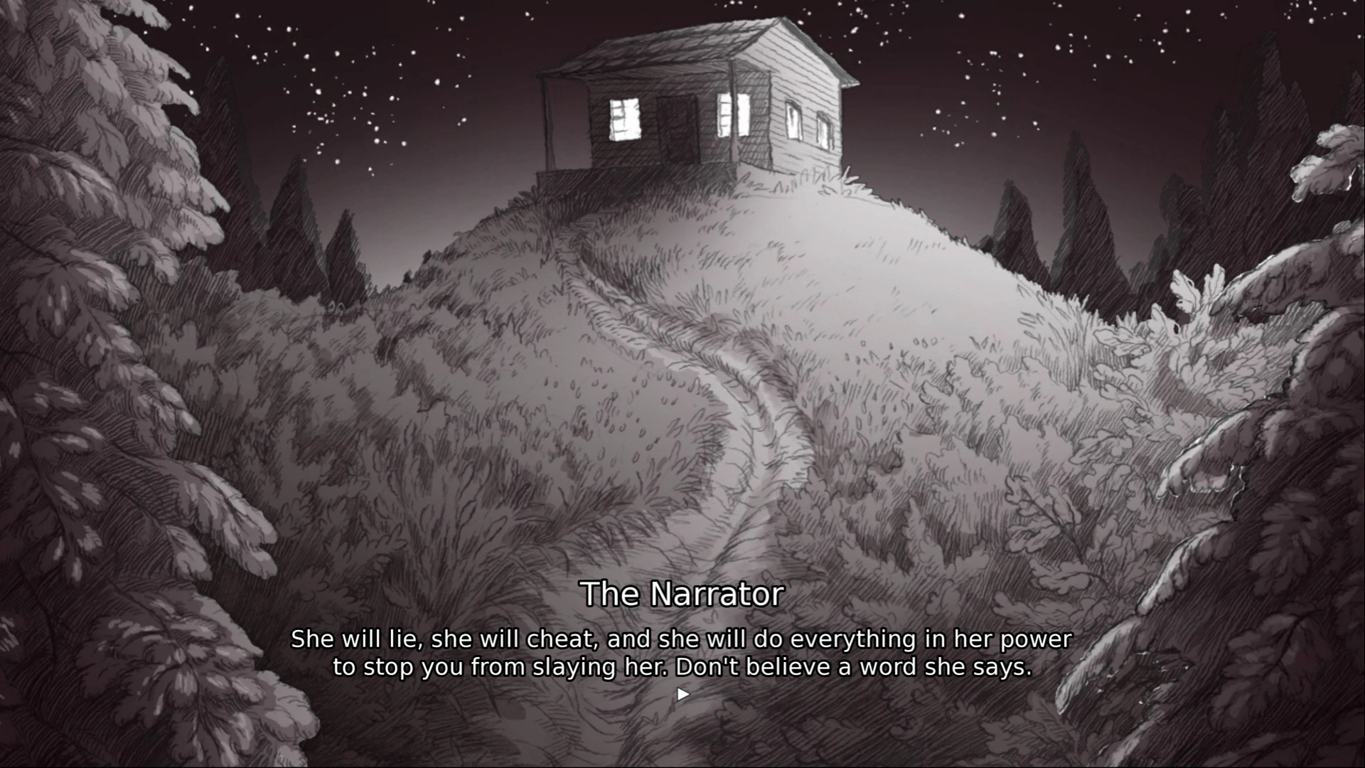Slay the Princess — это психологическая хоррор-визуальная новелла с сильным акцентом на выборы игрока. Вы оказываетесь на тропинке в лесу. В конце этой тропинки стоит хижина, а в подвале хижины сидит принцесса. Голос за кадром уверяет, что её нужно убить — иначе наступит конец света. Всё звучит просто и страшно одновременно.