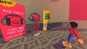 Геймплей строится на простых, почти детских радостях: лазать по стенам, собирать безделушки, рисовать спреем на заброшенных цистернах. Можно часами исследовать закоулки, натыкаясь на скрытые комнаты или странные мини-игры, спрятанные в самых неожиданных местах. Камера иногда ведёт себя как подвыпивший оператор — чуть дрожит, смещается в сторону, будто сама любуется пейзажем. И в этом есть своя прелесть: игра не торопит, не оценивает, не требует быть эффективным. Она просто даёт тебе место, где можно быть немного странным без осуждения.