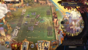 Игра предлагает три фракции с разными героями и стилями ведения войны. Каждый поход по карте напоминает приключение: исследуешь руины, нанимаешь новых бойцов, принимаешь решения через карточные диалоги, которые влияют на развитие сюжета и ресурсы королевства. Прогрессия построена по принципу рогалика — проиграл кампанию, начинаешь заново, но сохраняешь часть знаний и умений, что делает каждый новый запуск чуть глубже предыдущего.