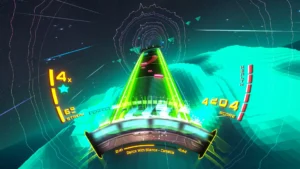 В игре собрана коллекция электронных треков от независимых артистов: драм-н-бейс, чиптюн, синтвейв и что-то среднее между ними. Сложность растёт незаметно — сначала ноты плывут размеренно, потом начинают разветвляться, появляются быстрые серии и неожиданные паузы. На высоких уровнях уже не уследишь за мелодией, играешь на ощупь, доверяясь мышечной памяти. Иногда ловишь себя на том, что качаешься в кресле вместе с битом.