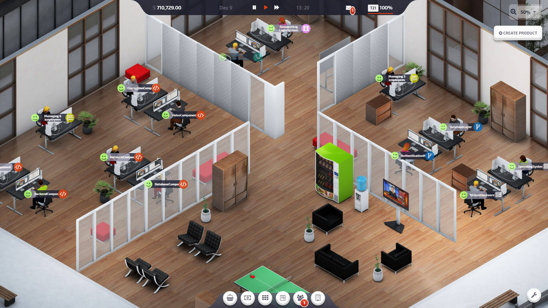 Особенность симулятора в том, что он не превращает бизнес в абстрактную таблицу цифр. Сотрудники устают, спорят о дизайне интерфейса, уходят к конкурентам за большей зарплатой. Клиенты жалуются на баги, инвесторы требуют отчётов каждую неделю, а то и вовсе отзывают финансирование после неудачного демо. При этом мелочи имеют значение: удобный кофемат в офисе поднимает настроение команде, а хаотичное распределение задач приводит к тому, что фронтенд ждёт бэкенд, а бэкенд простаивает из-за отсутствия ТЗ.