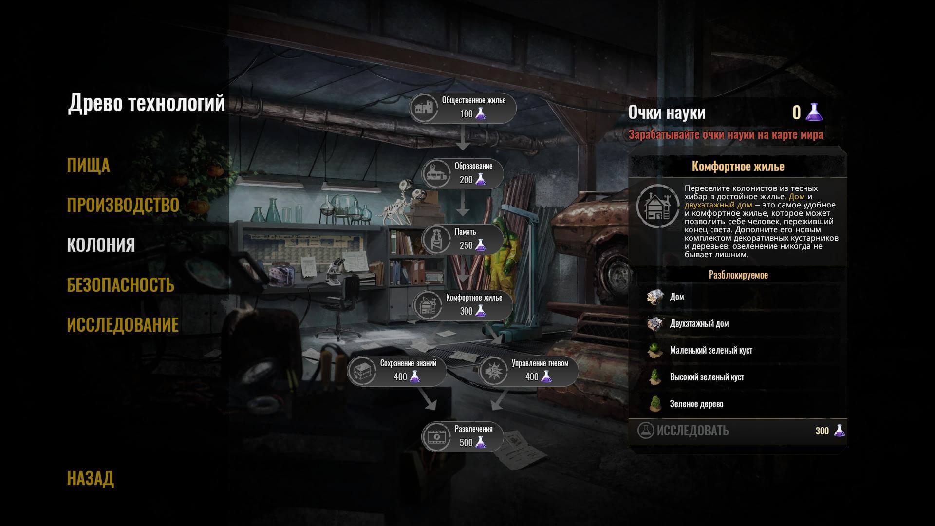 Игра не торопит. Первые недели уходят на примитивные хижины и костры, потом появляются солнечные панели и водонапорные башни, а спустя месяцы виртуального времени поселение превращается в настоящий оплот с больницей, фермами и даже школой. Но расслабляться рано: соседние колонии то предлагают обмен, то нападают без предупреждения, а на карте время от времени возникают события вроде эпидемии или нашествия мутантов. Планы рушатся, приходится импровизировать — и именно в этих моментах игра обретает свою подлинную атмосферу.