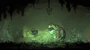 Бой в Tails of Iron построен на тактике, а не на рефлексах. Можно парировать удары, уворачиваться в последний момент или подставлять щит, выжидая удобного момента для контратаки. Враги не прощают ошибок — один неверный рывок, и приходится начинать с последней скамейки у костра. Зато когда наконец удаётся одолеть здоровенного жаба-полководца, чувство облегчения смешивается с уважением к этому упрямому миру, где даже победа даётся со скрипом.