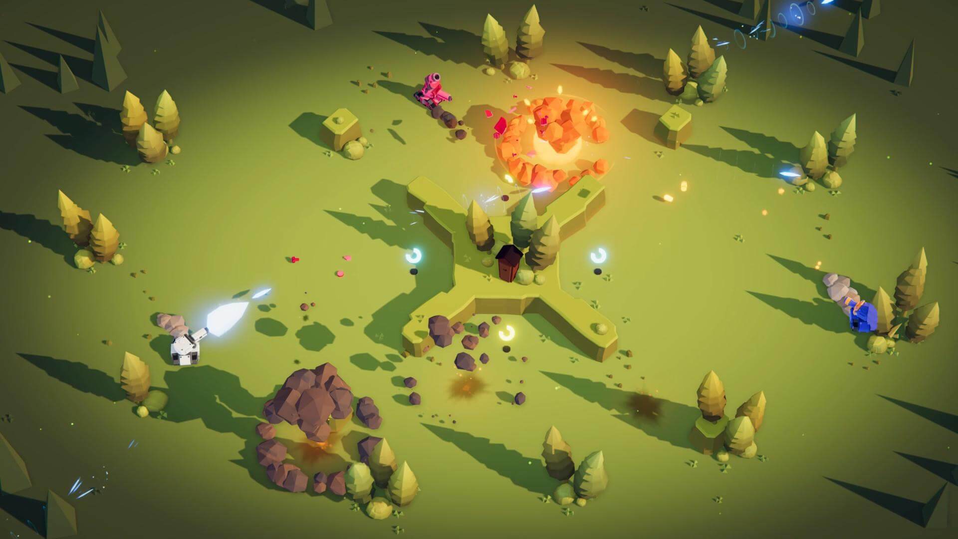 TANKNAROK — это аркадный танковый бой, где до четырёх игроков сражаются друг с другом на компактных аренах. Управление предельно простое: один стик отвечает за движение, второй — за поворот башни и прицеливание. Игра не заставляет разбираться в сложных механиках — через минуту после запуска все уже стреляют, уворачиваются от снарядов и подбирают улучшения. Подходит для быстрых сессий с друзьями за одним компьютером или для онлайн-дуэлей с незнакомцами.