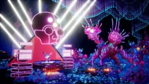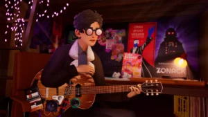 Мир вокруг меняется с каждой сыгранной мелодией. Пейзажи вспыхивают неоном, облака собираются в фигуры странных существ, а камни начинают пульсировать в такт. Встречаются и другие персонажи — от загадочной артистки Виолетт до инопланетного продюсера Лайтмана — каждый добавляет слой к истории о том, как трудно перестать быть тем, кем тебя считают, и начать звучать по-своему. Саундтрек от Джонни Галвати то обволакивает синтезаторными волной, то взрывается гитарным штормом.