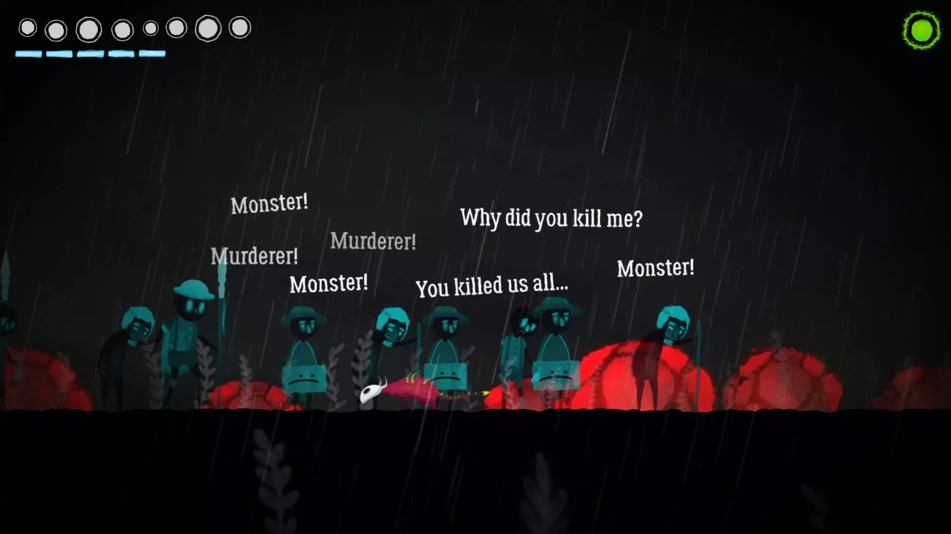 Огден ползает по заброшенным чердакам, подземельям и опустевшим улицам, собирая глаза поверженных врагов. Эти глаза — валюта нового существования: за них можно улучшить кислотные плевки, научиться метать желчные бомбы или дольше цепляться за поверхности над головой. Боссы не просто преграды на пути — они странные, искажённые создания, в каждом угадываются обрывки былой человечности. Победа над ними даёт не только новую способность, но и кусочек истории: чьи-то воспоминания, чей-то страх, чья-то боль.
