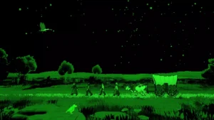 День сменяет день в однообразном ритме дороги: днём — управление ресурсами и случайные встречи с торговцами или стаями буйволов, вечером — монотонный клик по кнопке «охота», где удача часто важнее меткости. Иногда повезёт набить лося, а иногда вернёшься к повозке с пустыми руками и голодными детьми. Реки становятся настоящими точками напряжения — переправа может пройти гладко, а может унести всё имущество в бурном потоке. Эти моменты запоминаются не эффектной графикой, а ощущением настоящего риска: ты теряешь не процент здоровья, а последний мешок муки за сотни миль до цели.