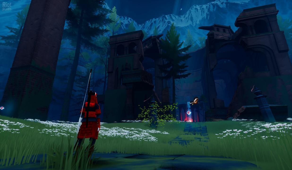 The Pathless переносит игрока в загадочный мир, где тьма поглотила землю, а время будто остановилось. Вы берете на себя роль Безымянной лучницы, чья единственная цель — разрушить проклятие, сковывающее эти места. Вместе с верным орлом она исследует древние руины и густые леса, пытаясь найти способ вернуть свет. История подается не через длинные диалоги, а через атмосферу одиночества и величественные пейзажи, заставляющие чувствовать себя частью чего-то большего.