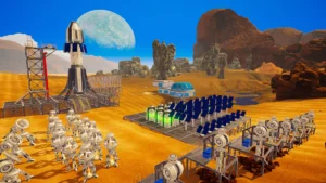 Игрок начинает с минимума: портативный генератор кислорода, несколько инструментов и схемы для базового оборудования. Сначала ставишь первые установки — они едва заметно меняют состав воздуха. Проходит час игрового времени, и давление повышается на пару процентов. Ещё час — температура ползёт вверх. Постепенно появляются облака, потом моросящий дождь, а на камнях — первые зелёные пятна лишайника. Всё это происходит медленно, почти незаметно, но когда вдруг замечаешь, что небо стало чуть светлее, а датчики показывают 5% кислорода вместо нуля — возникает странное чувство: ты действительно что-то изменил.