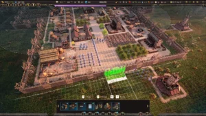 Город растёт медленно и неуклюже, как бывает в жизни. Сначала — землянка для первых переселенцев, потом глиняная печь, потом мельница у ручья. Производственные цепочки здесь не абстрактные схемы, а череда реальных действий: лесоруб валит дерево, подёнщик тащит брёвна на площадь, плотник строгает доски для крыши. Иногда строительство застопорится из-за того, что все рабочие ушли собирать ягоды — голод не ждёт расчётов на бумаге. И тогда приходится менять планы на ходу.